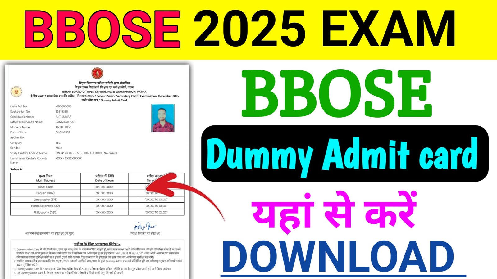 BBOSE Dummy Admit Card Download 2025 Exam