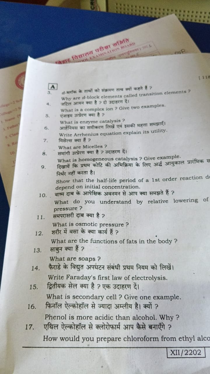 class 12th chemistry Sent-up exam 2026 Answer Key Question Answer बिहार बोर्ड final Exam के लिए vvi…